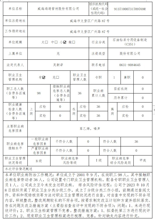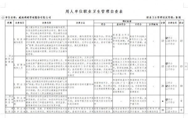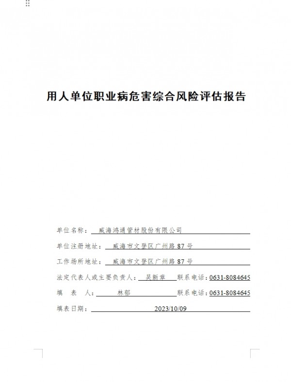 威海鴻通管材股份有限公司自查評(píng)估報(bào)告