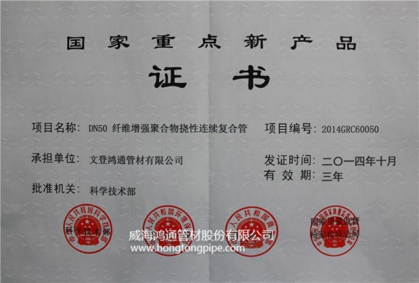 國(guó)家重點(diǎn)新產(chǎn)品(纖維增強(qiáng)撓性復(fù)合管